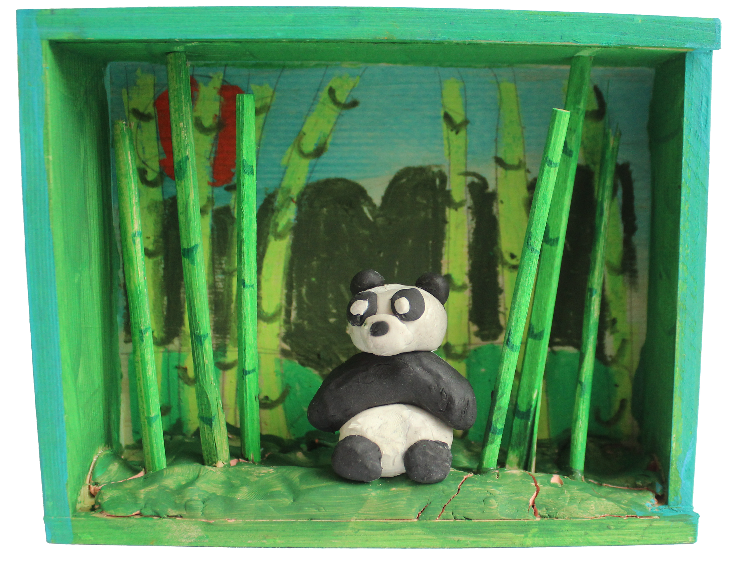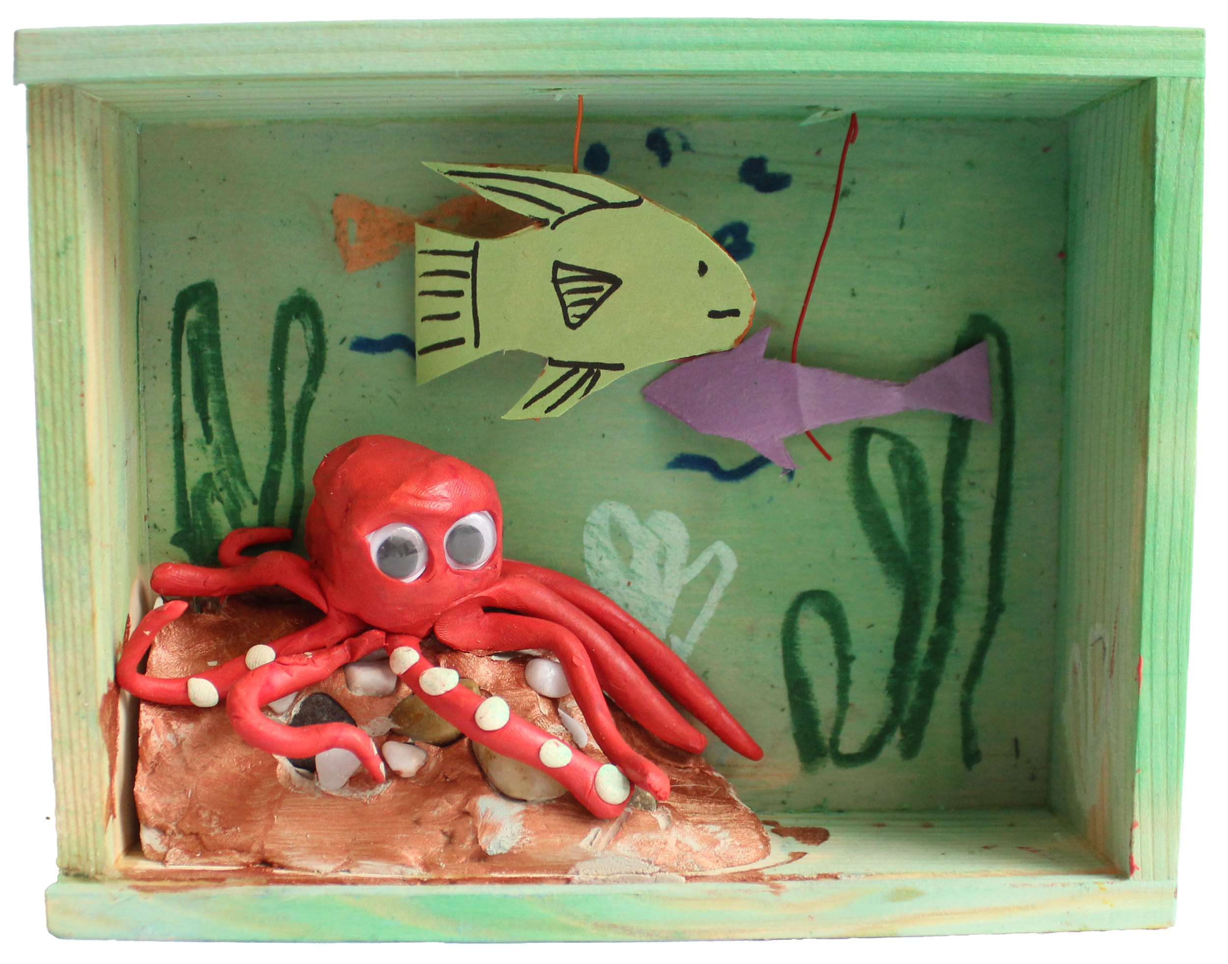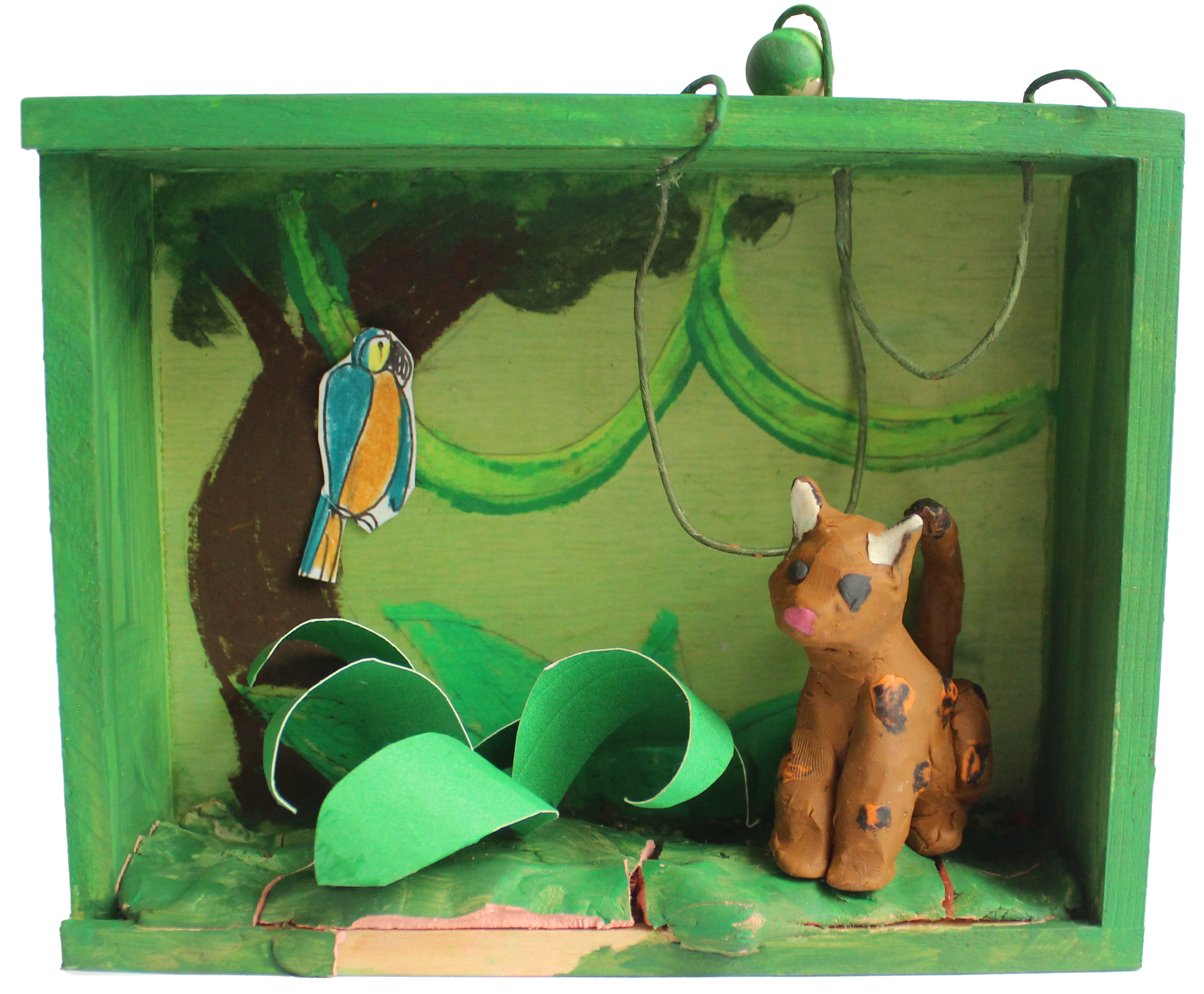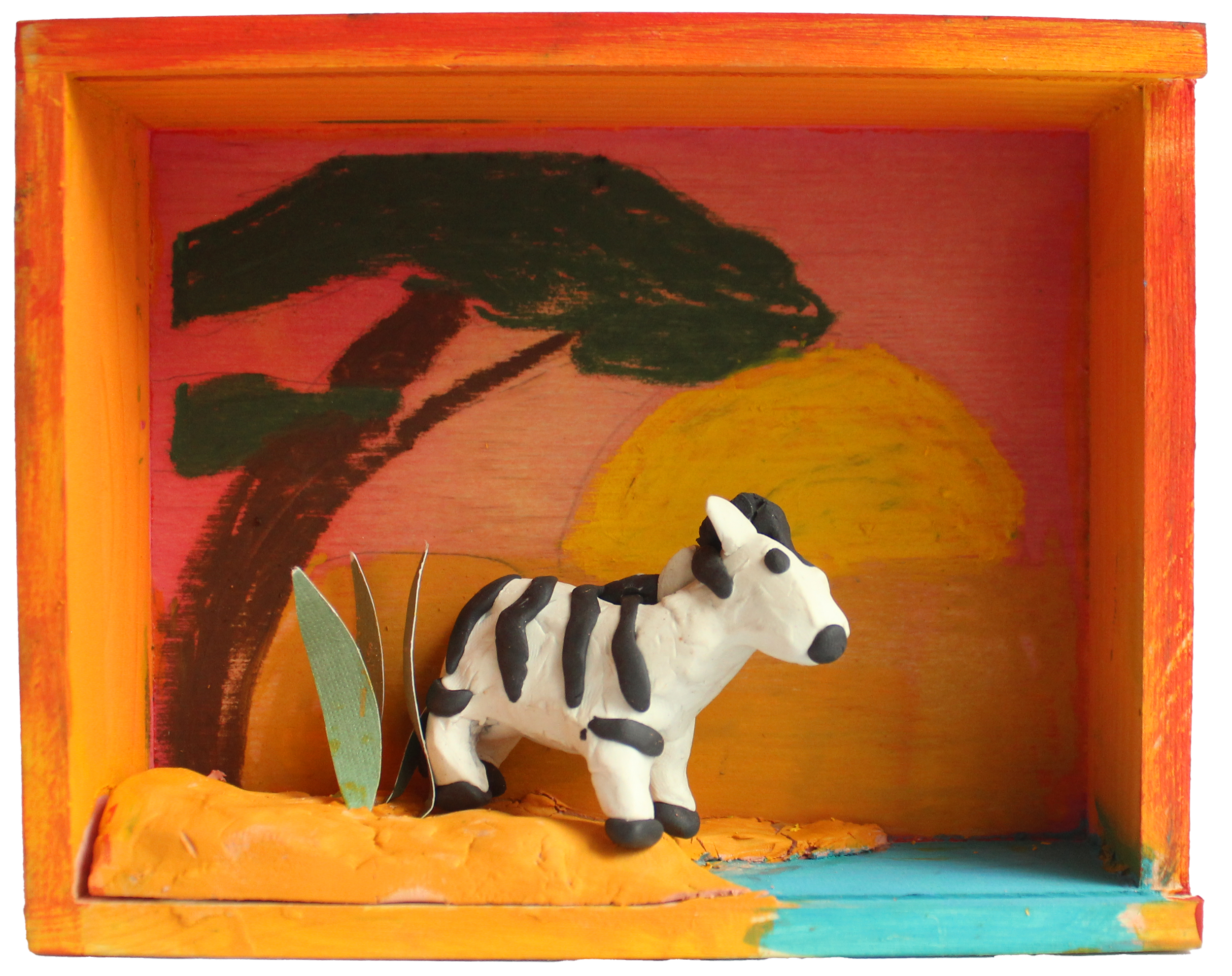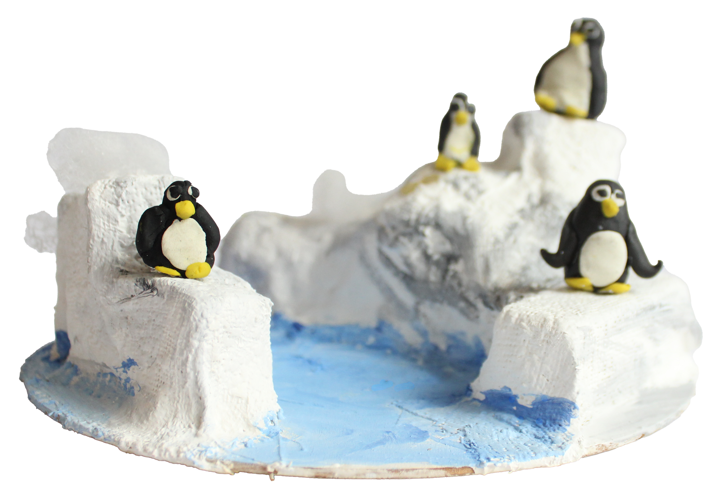 Project uses tacky glue, plaster strips, modeling clay + paint.