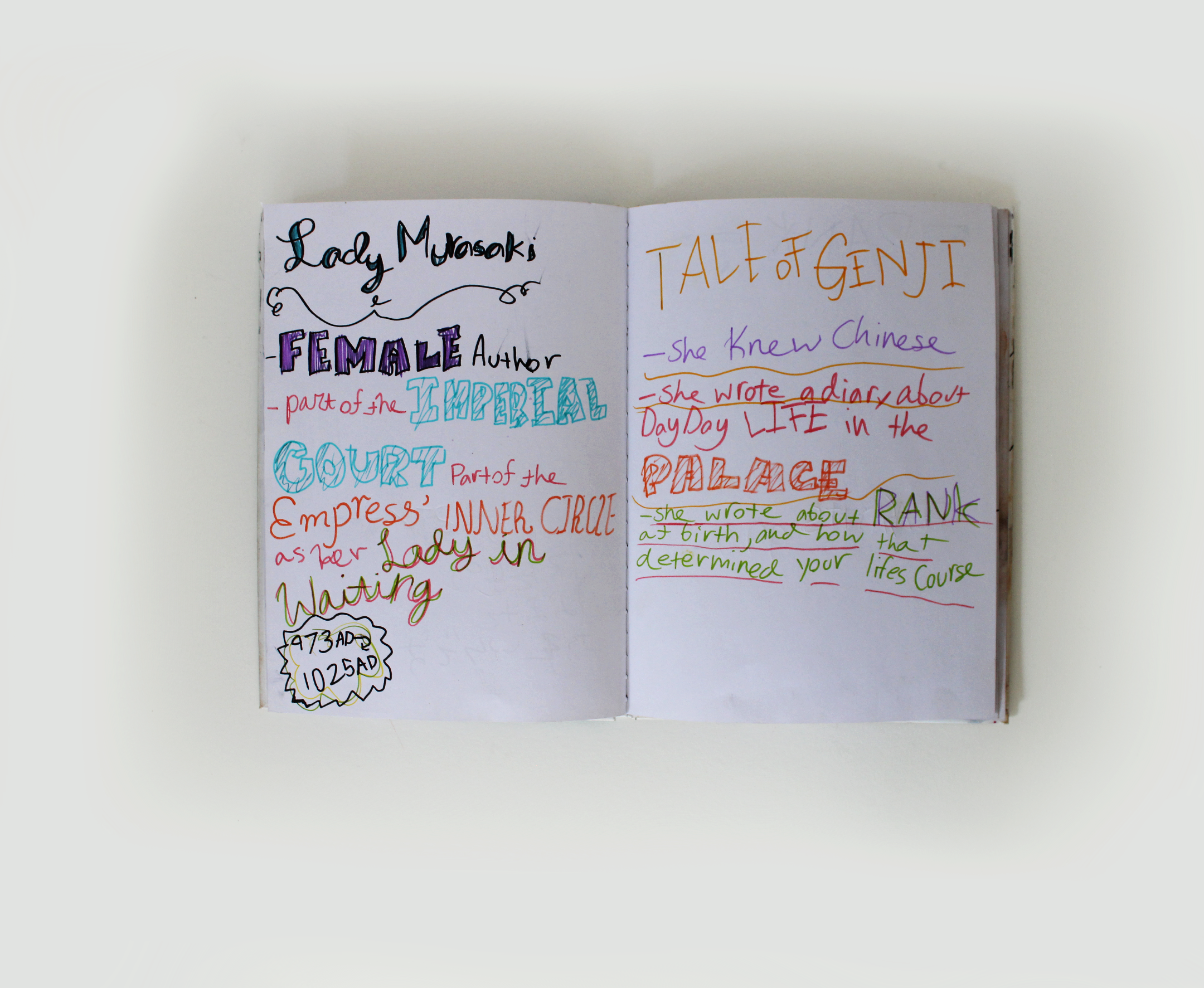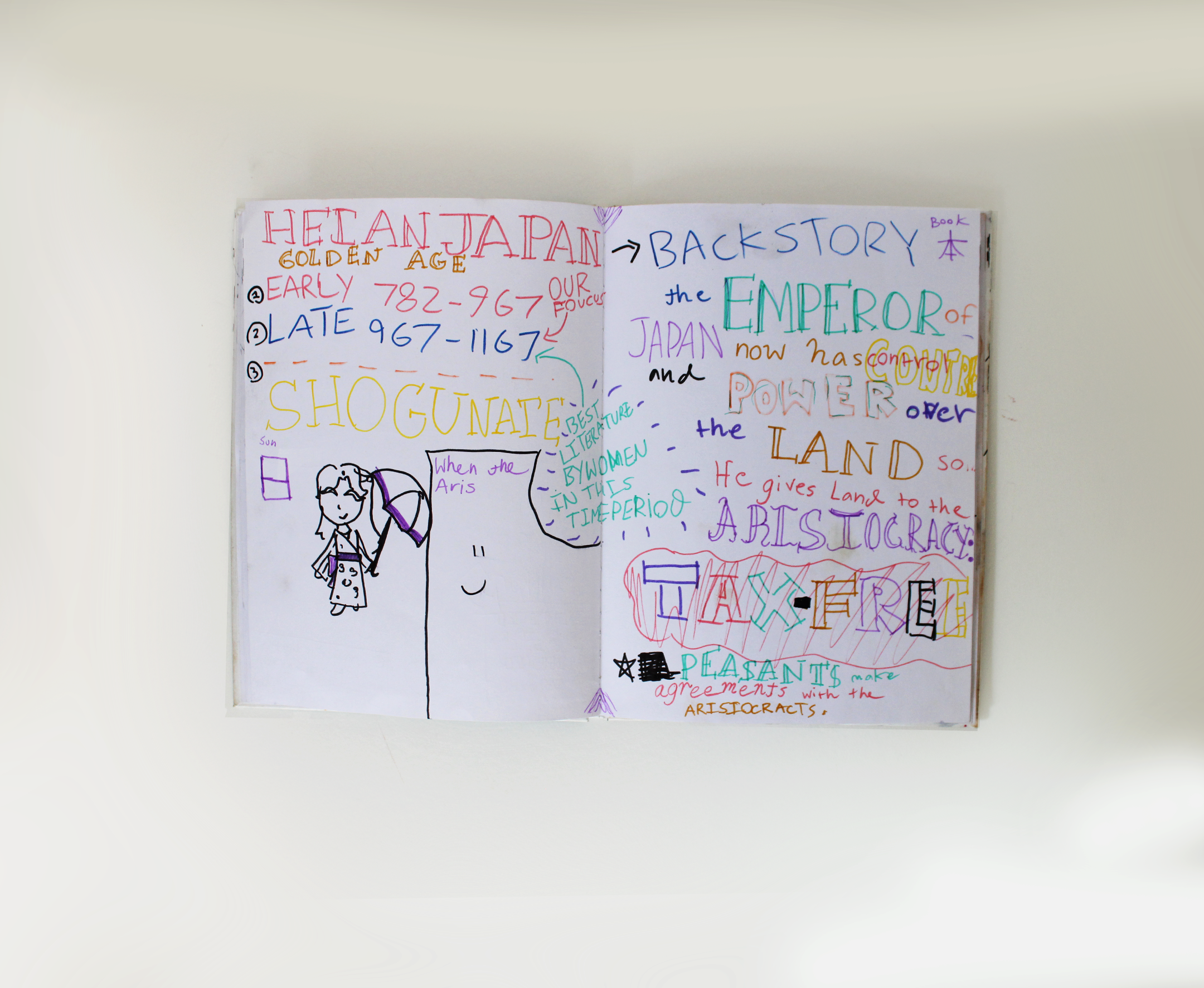 During this semester-long unit, students learned about Medieval Japanese history, religion, culture, art, and poetry. Through lectures, they heard accounts of the noble classes of Japanese life and learned about authors Murasaki Shikibu and Sei Shōnagon. Students heard excerpts of what is considered to be the first modern novel, ‘The Tale of Genji'’ and ‘The Pillow Book.’ They also explored art motifs as they made their own miniatures for their Heian houses and poetry from the ‘Kokinshu.’ To finish off the semester, they learned about the rise of the samurai and the era that ushered in the end of the Heian period.