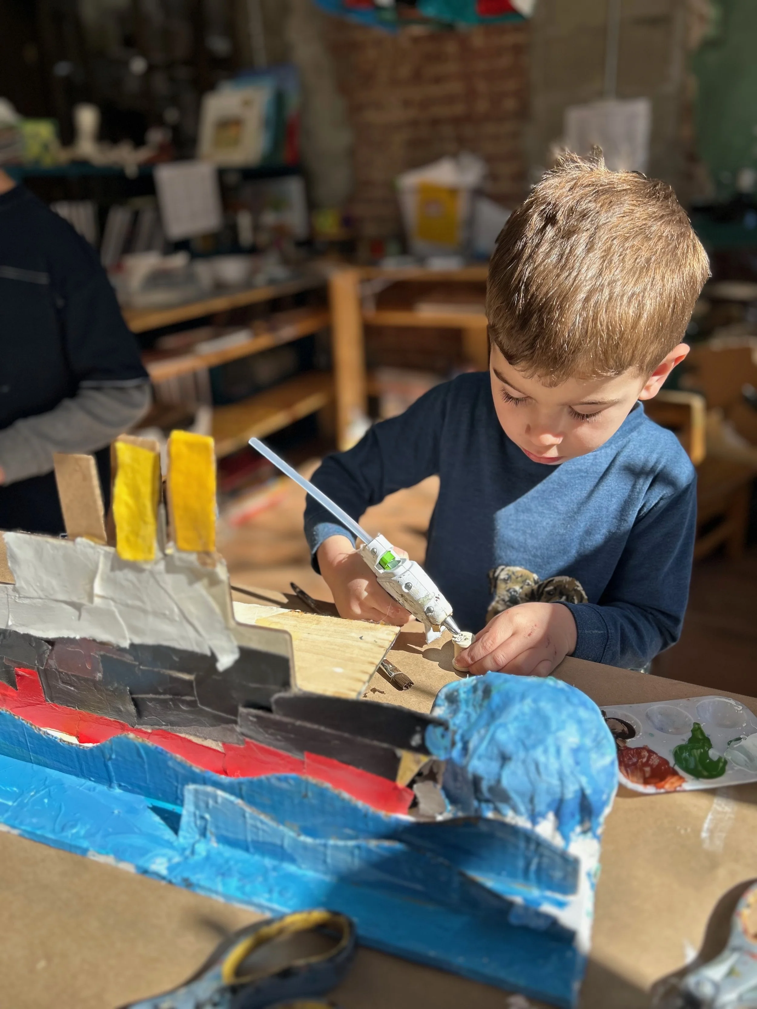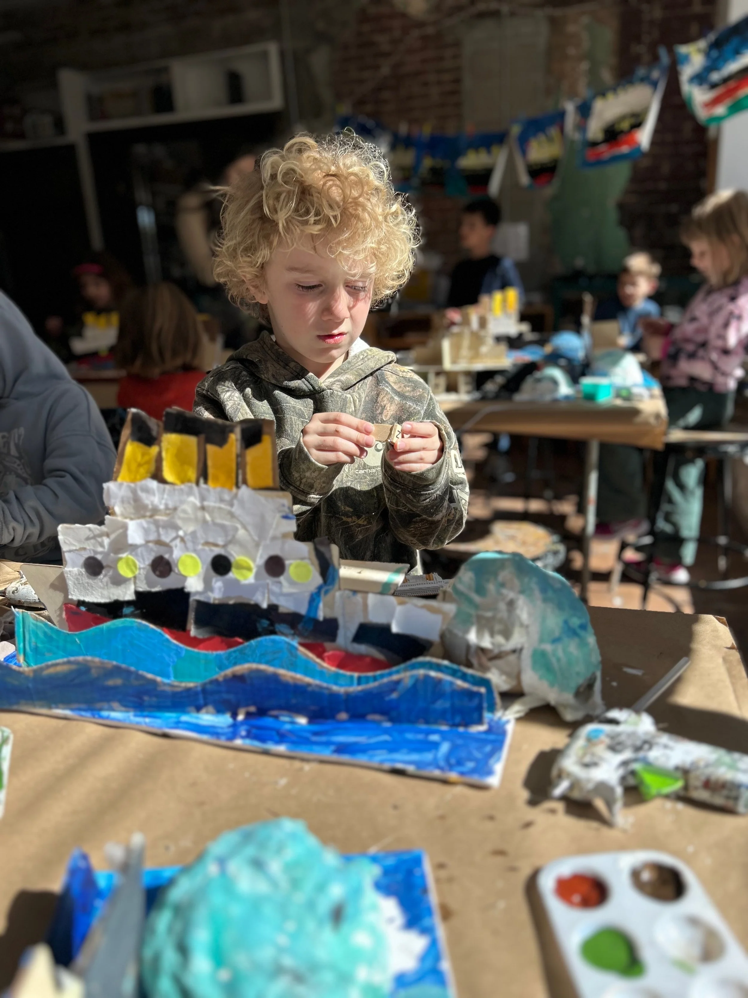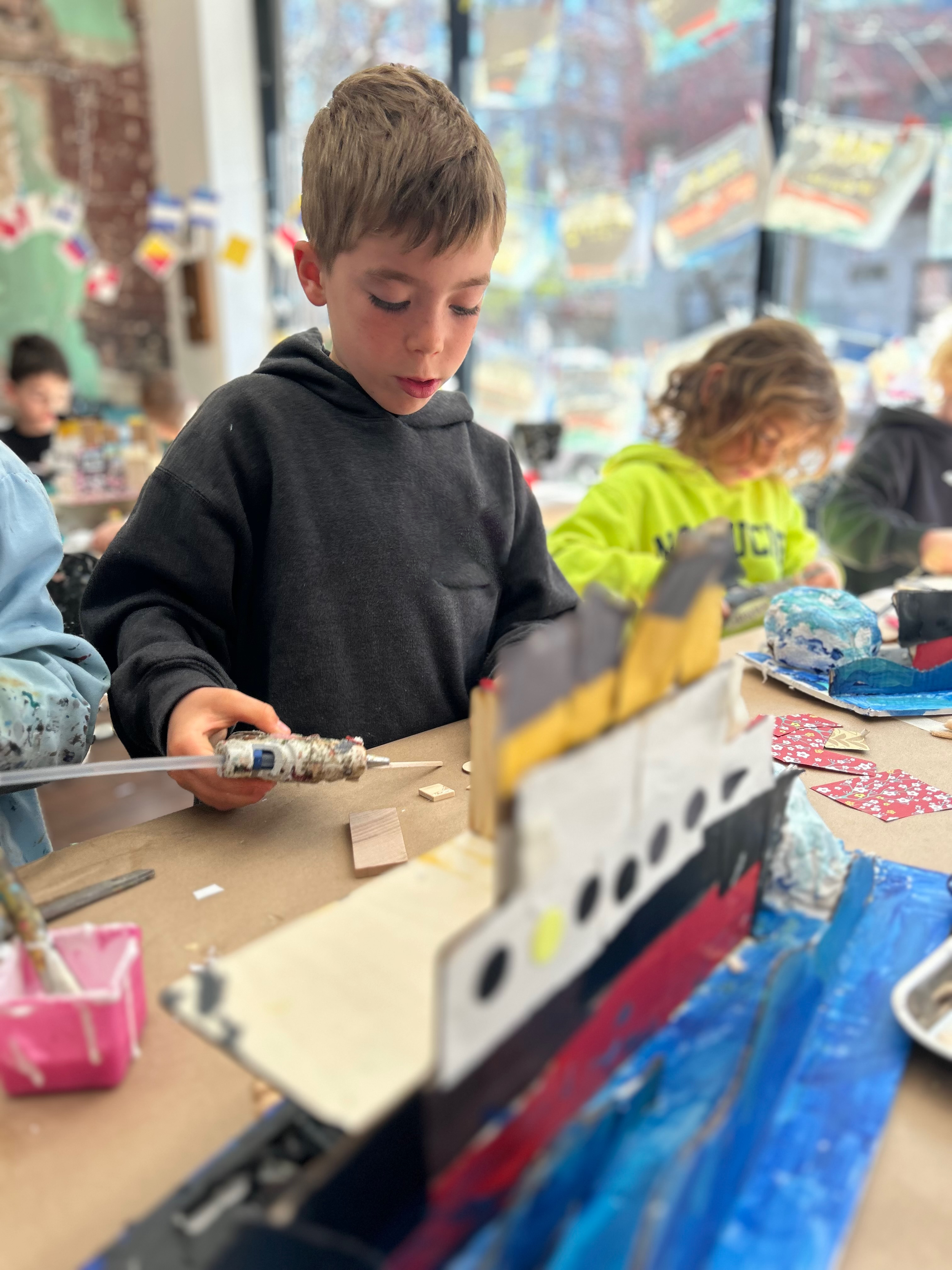 Over Spring break, students learned about the Titanic! The lessons started with the building of the ship, then progressed to the different rooms, classes, and roles on the ship. They also discussed the failures that led to the sinking of the ship, the invention of the telegraph, and the heroes of the disaster. Throughout the week, they built a diorama of the Titanic that had rooms showcasing the 1st class dining room, 1st and 3rd class bedrooms, boiler room, and Marconi room (aka where the telegraph was kept). At the end of the week, students learned how to type out their name on a telegraph using Morse code!