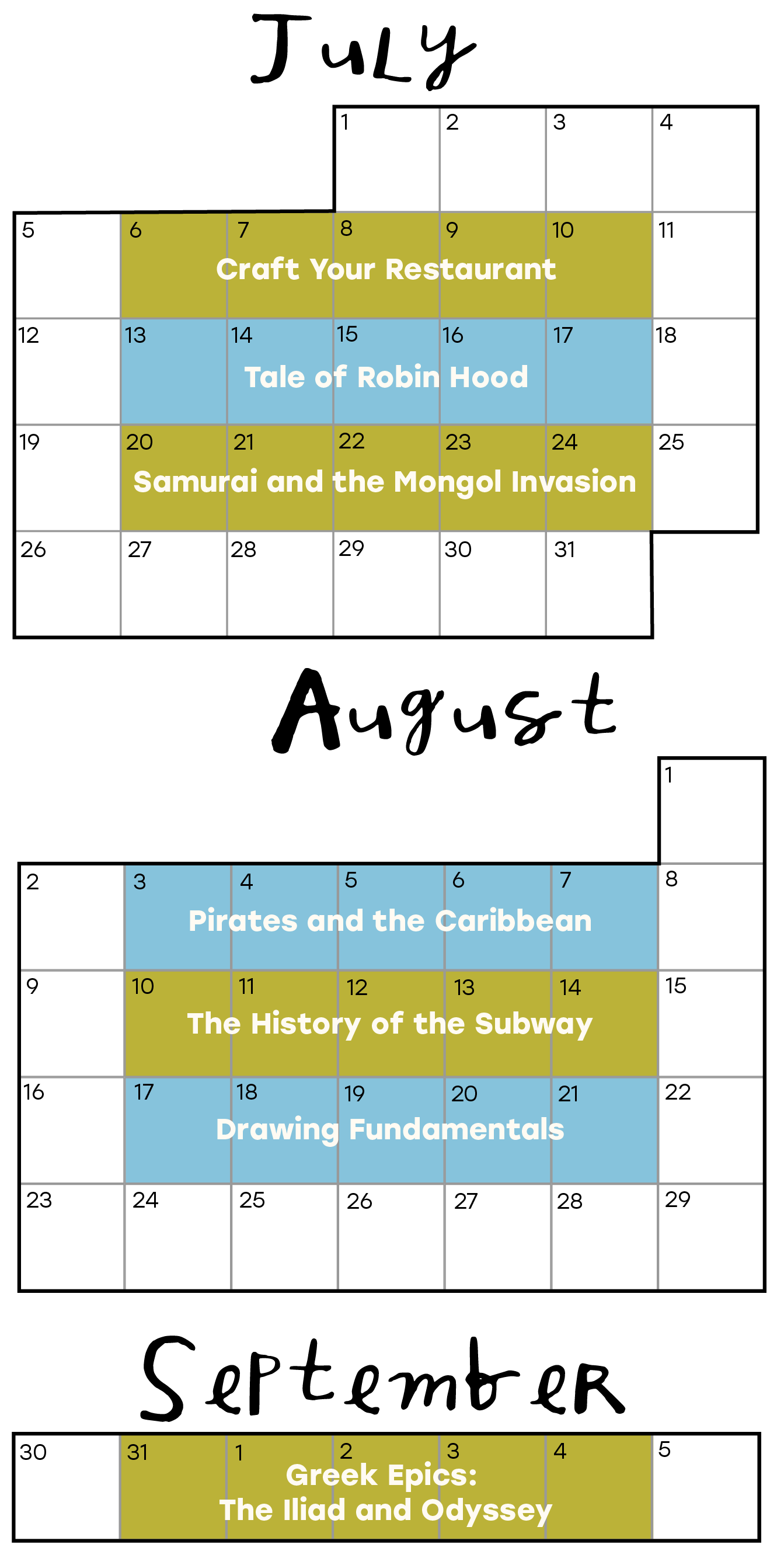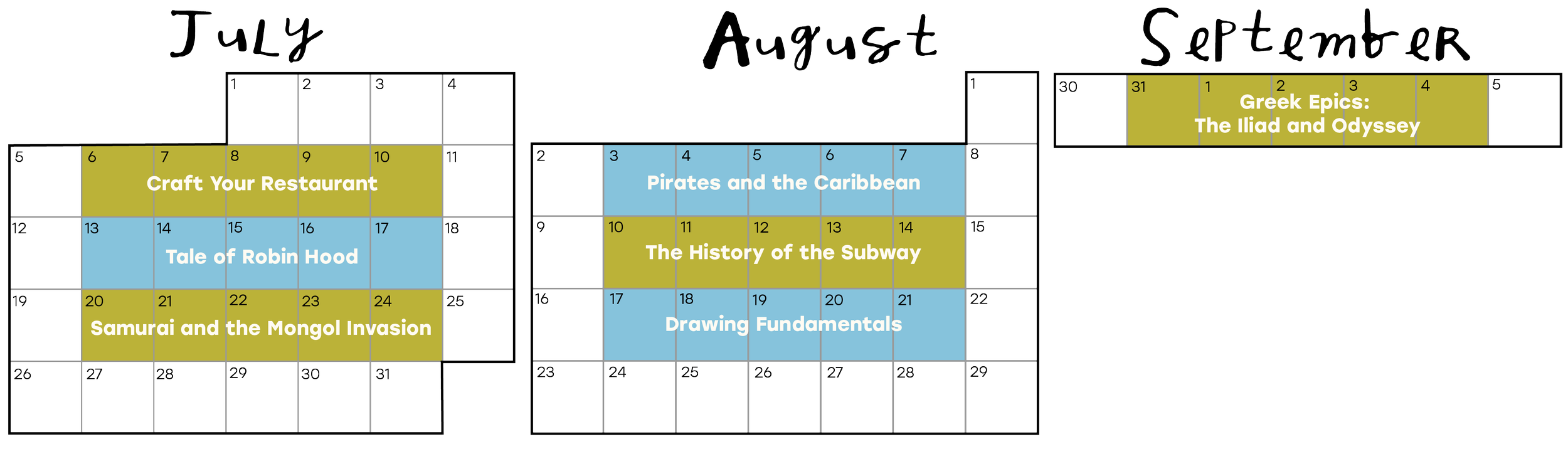 We are now offering late pick-up until 5:30pm each day! Sign up is available when registering your student for their workshop.